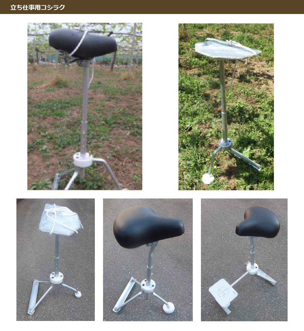 固定サドル式小・平板腰かけ小があり、いずれも高さが60cm~80cmの間で調節可能です。 踏み台のみオプションとなっております。座ってコシラク®